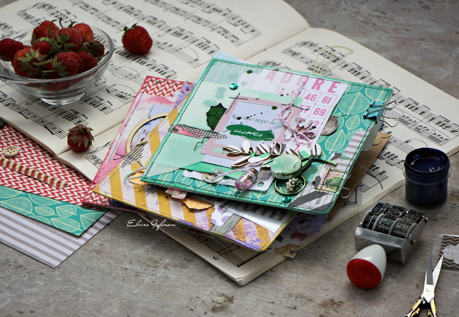 Дневник будет хранить фотографии квадратного размера, различные фактурные странички, кармашки, конвертики для хранения памятных вещиц(билетиков, этикеток и т.д.).